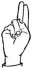 На ћирилици написано АНТОНИНА ДУБОВАЦ састоји се из 15 слова [?]. Исписано ћириличном једноручном азбуком за глувонеме: